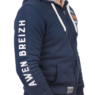 Article en molleton doublé sherpa, marquage cœur et manche : "Aventurier des Mers" et "Awen Breizh" (L'Esprit Breton")